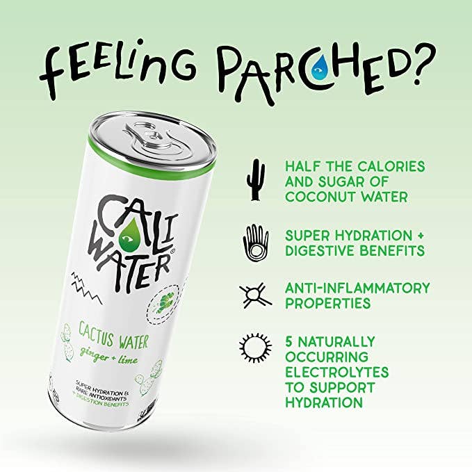 Open your mind to world of Cactus Water! The ultimate “SuperDrink”, our Ginger & Lime contains all the rare antioxidants to boost health and hydration, but with added digestion benefits! With 200mg of Nopal Cactus Extract, it’s the perfect mixer for cocktails! Each can contain 25 calories, is Kosher, Vegan & Non-GMO.