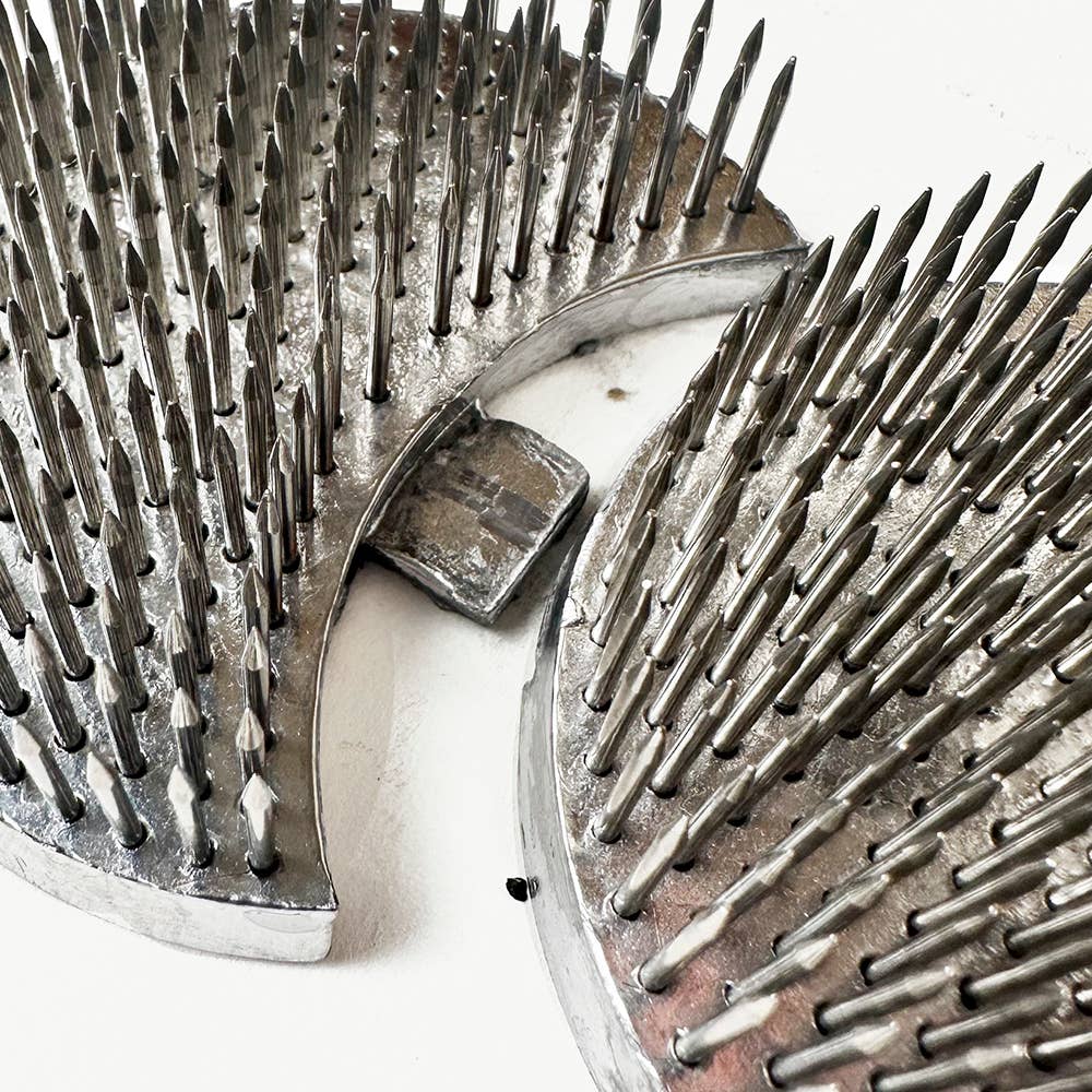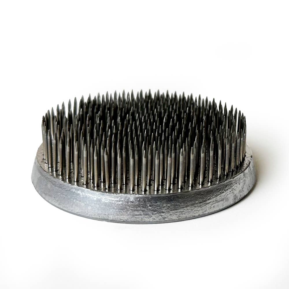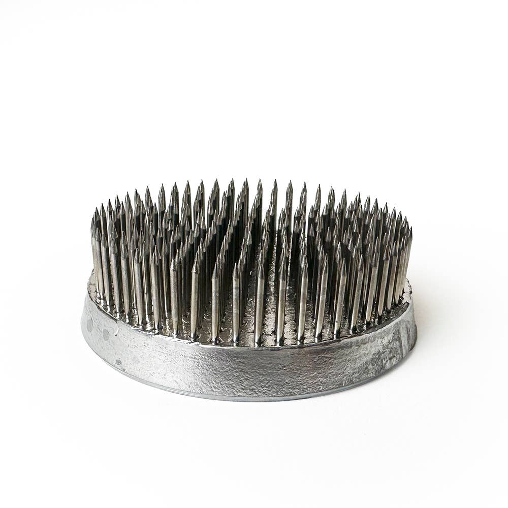 Also known as Floral Kenzans, Floral Frogs are stainless steel pin cushions most notably used in traditional Japanese Ikebana floral arranging. The stems of the flower are cut to your desired height, then impaled onto a prick of the pin. Because the water shoots up the stem of the flower, frogs help extend the life of your flower. We have no idea why they were given the name Frog.