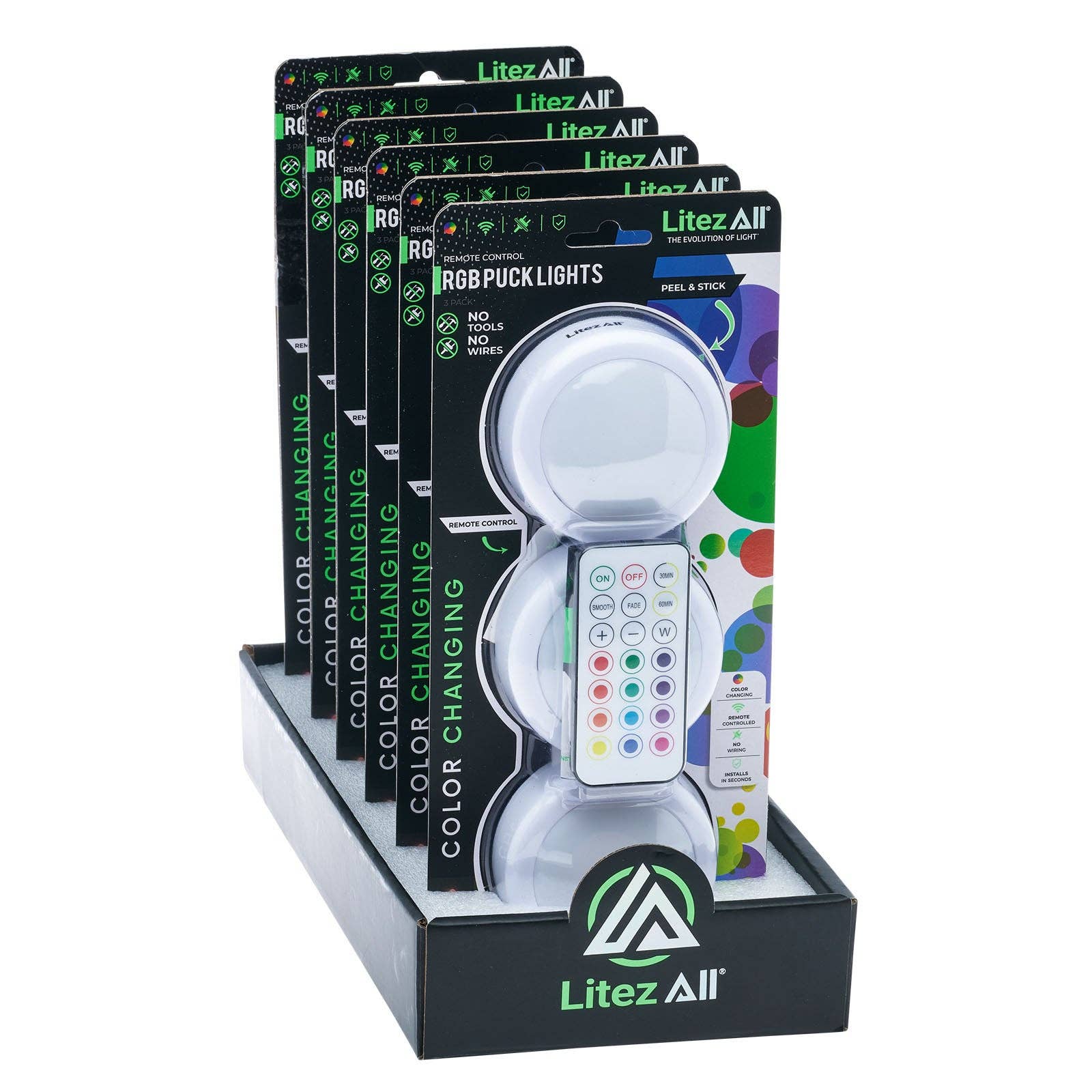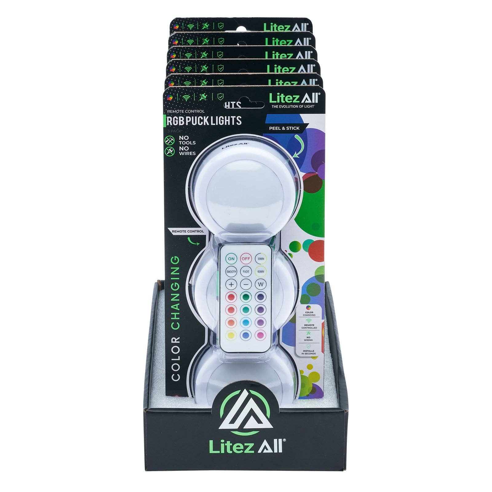 LitezAll Remote Control RGB Puck Lights 3 Pack