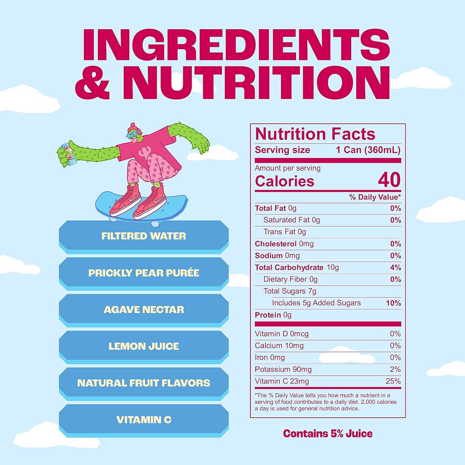 Surprising hints of pink bubblegum, finished with smooth and juicy watermelon notes. A taste of the oasis. 40 calories, 5 grams sugar, and made with real prickly pear cactus!